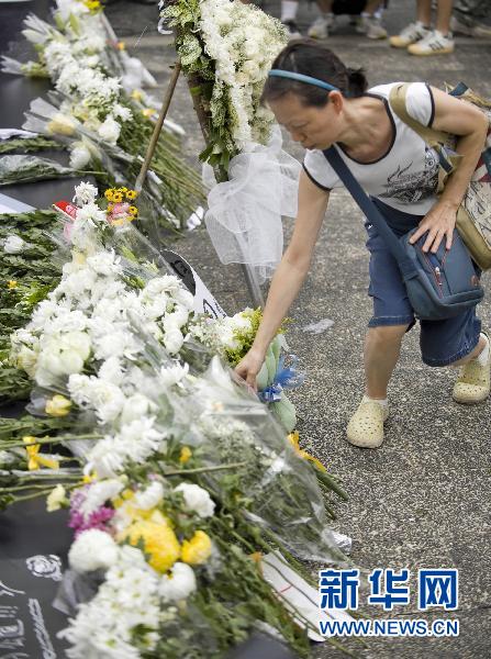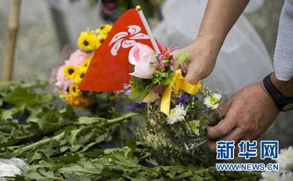 8月29日,游行市民在遮打花園獻(xiàn)花,哀悼遇難同胞。新華社記者呂小煒攝
