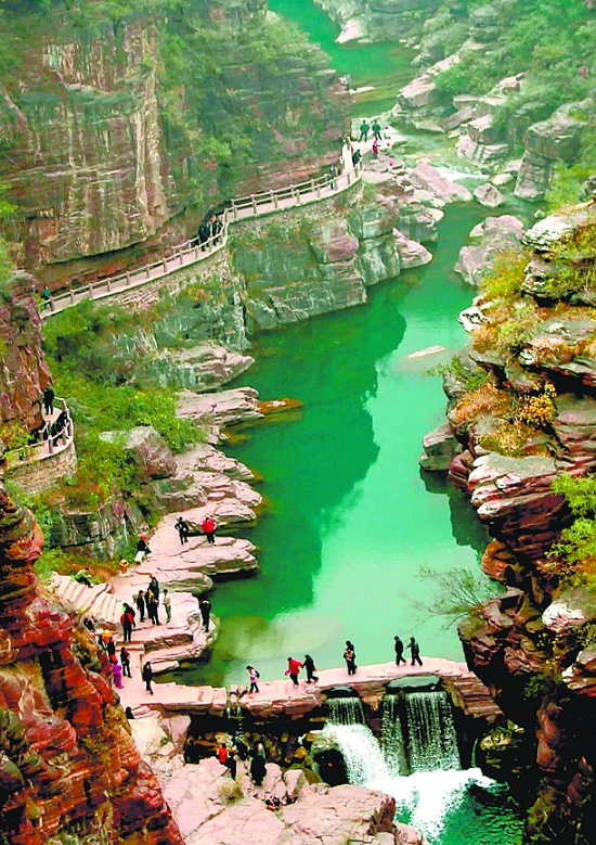 近日,河南省首屆“十大優(yōu)美地質(zhì)景觀”評(píng)選揭曉,我市云臺(tái)山紅石峽水體景觀(右圖)、神農(nóng)山“龍脊長(zhǎng)城”景觀(下圖)等10處地質(zhì)景觀名列其中。