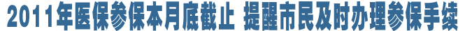 本報(bào)訊 (記者丁壘) 12月22日,記者從市社會(huì)醫(yī)療保險(xiǎn)中心了解到,我市2011年城鎮(zhèn)居民基本醫(yī)療保險(xiǎn)參保工作2010年12月31日結(jié)束,為了避免因未參保導(dǎo)致患病得不到國(guó)家扶助的事件發(fā)生,市社會(huì)醫(yī)療保險(xiǎn)中心工作人員提醒市民及時(shí)辦理參保手續(xù)。