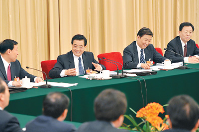 ——胡錦濤總書(shū)記參加江蘇代表團(tuán)審議側(cè)記