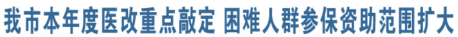困難人群參保,資助范圍擴大。醫(yī)改工作實施兩年來,我市居民的基本醫(yī)療保障水平有了很大提高。本年度,我市將繼續(xù)提高醫(yī)療保障水平,擴大門診統(tǒng)籌范圍,普遍開展城鎮(zhèn)居民醫(yī)保、新農(nóng)合門診統(tǒng)籌,將基層醫(yī)療衛(wèi)生機構(gòu)使用的醫(yī)保目錄內(nèi)藥品和收取的一般診療費按規(guī)定納入支付范圍。資助困難人群參保的范圍也將擴大,資助范圍從低保對象、五保戶擴大到低收入重病患者、重度殘疾人、低收入家庭老年人等特殊困難群體。