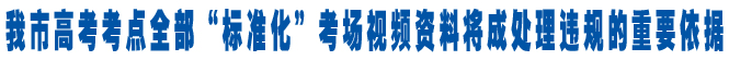 昨日,我市組織收聽收看了2011年全國普通高校招生考試工作電視電話會(huì)議,會(huì)議要求全面加快高考標(biāo)準(zhǔn)化考點(diǎn)建設(shè)。今年我省要求各地大力推進(jìn)國家教育考試標(biāo)準(zhǔn)化考點(diǎn)建設(shè),按照“統(tǒng)一規(guī)劃、統(tǒng)一標(biāo)準(zhǔn)、統(tǒng)籌協(xié)調(diào)、分步實(shí)施、高效務(wù)實(shí)”的原則,加快標(biāo)準(zhǔn)化考點(diǎn)前端設(shè)施建設(shè),爭(zhēng)取高考前建立覆蓋所有試卷保密(保管)室和考場(chǎng)的視頻監(jiān)控系統(tǒng),逐步建立并完善考試綜合業(yè)務(wù)系統(tǒng)、考生身份驗(yàn)證系統(tǒng)、作弊防控系統(tǒng)、應(yīng)急指揮系統(tǒng)。所有的標(biāo)準(zhǔn)化考場(chǎng)必須全部啟用。藝術(shù)、體育考生必須安排在標(biāo)準(zhǔn)化考場(chǎng)。同時(shí),要建立和完善保密(保管)室、考場(chǎng)網(wǎng)上巡查的管理制度,對(duì)標(biāo)準(zhǔn)化考點(diǎn)的人員配備、責(zé)任分工、系統(tǒng)維護(hù)、數(shù)據(jù)安全、資料保管、錄像審看等作出具體要求,加強(qiáng)視頻資料的審查、使用和保管?紙(chǎng)視頻資料將作為對(duì)考場(chǎng)違規(guī)行為處理的重要依據(jù)之一。