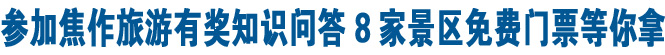 本報訊 (記者王愛紅) 你想獲得云臺山、神農(nóng)山、青天河、青龍峽景區(qū)免費門票的話,5月19日“中國旅游日”當(dāng)天去市東方紅廣場參加焦作旅游有獎知識問答吧,我市8家旅游景區(qū)的700多張免費門票等著你來拿!
