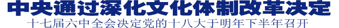 黨的十七屆六中全會(huì)審議通過了《中共中央關(guān)于深化文化體制改革、推動(dòng)社會(huì)主義文化大發(fā)展大繁榮若干重大問題的決定》。