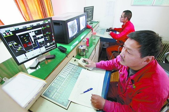 記者昨日下午從市綠源熱力有限公司鍋爐運行溫控室操作平臺上看到,正在預(yù)熱狀態(tài)的一級管網(wǎng)的出水溫度在70℃到80℃之間!斑@兩天管網(wǎng)預(yù)熱溫度很穩(wěn)定,現(xiàn)在正準備對一級管網(wǎng)進行提溫,今天晚上會提前幾個小時打開各個小區(qū)的供暖換熱站!闭诓僮髌脚_監(jiān)控各項指標的工作人員說。