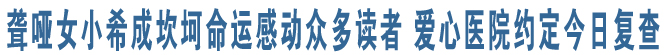經(jīng)過和小希成的奶奶王月蘭及武陟縣特殊教育學(xué)校校長司保東聯(lián)系,復(fù)查的時間約定在19日上午。小希成“命運(yùn)闖關(guān)”之路是否能夠一帆風(fēng)順?本報將繼續(xù)關(guān)注。