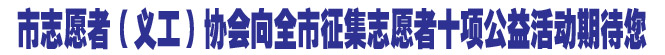 市志愿者(義工)協(xié)會(huì)將12月3日(本周六)定為公益崗位對(duì)接活動(dòng)日,組織招募的志愿者在全市統(tǒng)一開展志愿服務(wù)活動(dòng)。