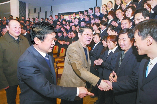 焦作日報社和市廣電局全體員工用熱烈的掌聲歡迎路國賢一行的到來!靶量嗔!”“拜個早年!”路國賢與新聞工作者一一握手,充分肯定成績,殷切寄語發(fā)展。路國賢指出,過去的一年,我市經(jīng)濟社會保持了平穩(wěn)較快發(fā)展,呈現(xiàn)出好的趨勢、好的態(tài)勢、好的氣勢。這是全市上下共同努力的結(jié)果,也與全市新聞單位的辛勤勞動分不開。一年來,全市新聞單位堅持圍繞中心,服務(wù)大局,做了大量富有成效的工作,在統(tǒng)一全市干部群眾思想、形成強大發(fā)展合力方面發(fā)揮了重要作用,他代表市委、市政府,向全市新聞工作者表示衷心的感謝和親切的慰問。