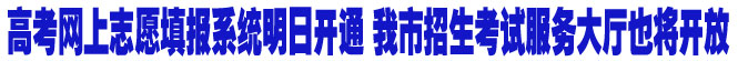 本報訊 (記者楊景鵬 實習生薛文娜) 高考結(jié)束后,經(jīng)過一段時間的休整,考生們又將迎來一場“重頭戲”——網(wǎng)上志愿填報。據(jù)了解,河南省招生辦公室網(wǎng)站(www.heao.gov.cn)“網(wǎng)上志愿填報”系統(tǒng)將于明日開通。為了更好地服務考生,位于市學生路的我市招生考試綜合服務大廳明日起也將對外開放,接受考生和家長的咨詢。