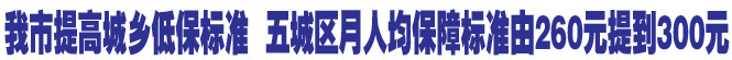我市提高城鄉(xiāng)低保標(biāo)準(zhǔn) 五城區(qū)月人均保障標(biāo)準(zhǔn)由260元提高到300元