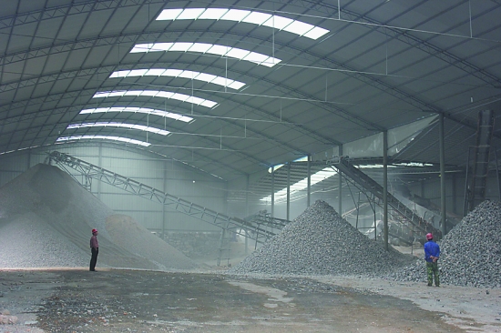 在修武縣境內(nèi)的萬通采石有限公司,一個(gè)覆蓋整個(gè)廠區(qū)的工篷已經(jīng)建成使用。破碎、傳輸、倉儲都覆蓋在工篷內(nèi),各道工序不僅按要求加裝了噴淋裝置且安裝了除塵設(shè)施。在與之相隔不遠(yuǎn)的聚億建材有限公司,覆蓋面積5500平方米的工篷正在建設(shè)。該廠負(fù)責(zé)人介紹,為了保證安全,還將在篷頂加裝電加熱裝置,用于防止篷頂積雪。雖然投入加大,但該負(fù)責(zé)人說:“既然進(jìn)行‘四化’建設(shè),就要做到實(shí)處,認(rèn)真做好,不留紕漏。相信現(xiàn)在的投入一定是值得的,也是有意義的!碑(dāng)天,檢查組共對山陽區(qū)、修武縣的5家持證涉礦企業(yè)的“四化”建設(shè)工作進(jìn)行了查看,隨行的環(huán)保、安監(jiān)等部門工作人員也對各持證涉礦企業(yè)“四化”建設(shè)情況提出了指導(dǎo)意見。