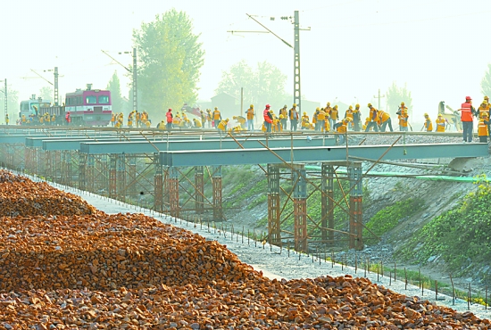 它是目前國(guó)內(nèi)斜交角度最小的鐵路頂進(jìn)立交橋