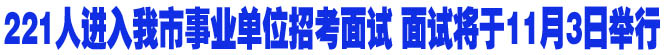 本報(bào)訊 (記者杜玲) 記者昨日從市人力資源和社會(huì)保障局獲悉,2012年我市市直事業(yè)單位公開招聘工作人員筆試工作已經(jīng)結(jié)束,面試工作將于11月3日進(jìn)行。經(jīng)面試資格確認(rèn),共有221人進(jìn)入面試。