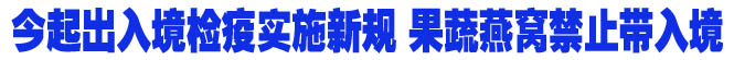 本報訊 (記者朱穎江 見習記者賈天罡) 多人出國旅游喜歡捎點水果回來送給親朋好友,但今日起實施新版《出入境人員攜帶物檢疫管理辦法》(以下簡稱《辦法》)后,從國外旅游回來就不能再攜帶任何水果、蔬菜以及燕窩、土壤、轉(zhuǎn)基因生物材料等。焦作出入境檢驗檢疫局提醒市民,出國旅游回國時要注意新《辦法》中的規(guī)定,避免購買攜帶禁止入境的物品。
