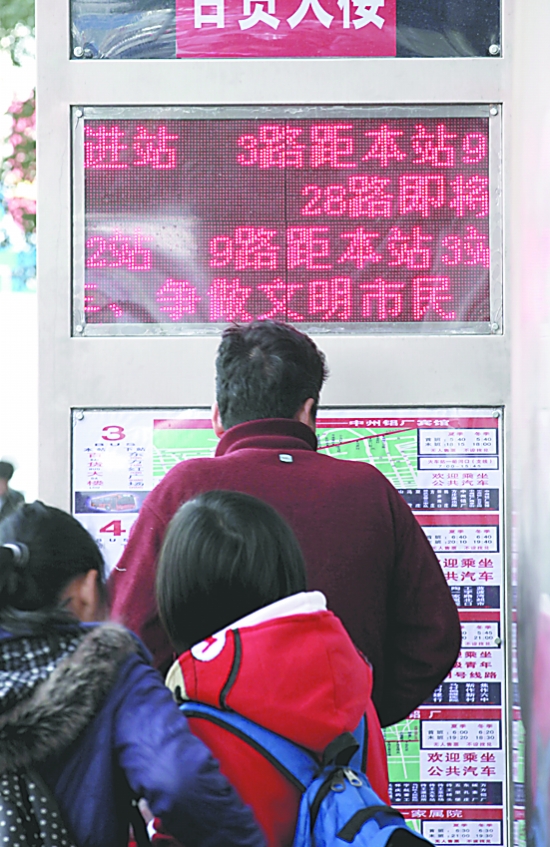 等車的時(shí)候可以隨時(shí)了解公交車信息 預(yù)計(jì)2013年市區(qū)主干道公交站牌將全部電子化