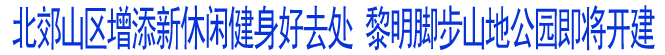 昨日上午,記者沿山陽(yáng)路來(lái)到北山腳下。山坡上,一條被人們踩踏出來(lái)的土路,曲曲折折直達(dá)山頂。山坡上的路口處,佇立著一塊鐫刻著“黎明腳步公園”的景觀石。這里,便是規(guī)劃中的黎明腳步山地公園的入口。根據(jù)規(guī)劃,在太行山南麓,南鄰山陽(yáng)路、林鄧線,西抵當(dāng)陽(yáng)峪村東邊界,東至嶺南變電站總面積3025畝的區(qū)域,為黎明腳步山地公園。