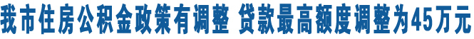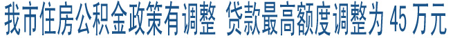 為更好地發(fā)揮住房公積金制度的優(yōu)惠政策,進一步加大對繳存職工購買住房的信貸支持力度,結合我市實際和職工購房具體需求,我市調(diào)整住房公積金貸款有關政策。具體的政策調(diào)整內(nèi)容為:將住房公積金貸款最高額度由原來的40萬元調(diào)整為45萬元。將貸款申請條件中申請人的住房公積金繳存時間由原來的12個月調(diào)整為6個月;申請貸款職工由于所在單位的原因拖欠繳存住房公積金的,須由單位一次性補繳貸款職工所欠住房公積金,并自補繳之月起按月連續(xù)繳存住房公積金3個月后,可申請貸款。貸款貼息對象增加“被房管部門批準認購經(jīng)濟適用房的”和“借款人家庭成員遭受重大突發(fā)事件造成還款困難的”,可以申請住房公積金貸款貼息;貸款貼息條件中取消對所購房屋面積的限制。取消商業(yè)貸款轉住房公積金貸款業(yè)務所提交材料中的商品房買賣合同和借款抵押合同,只須提供辦理原商業(yè)銀行住房貸款的借款合同原件及復印件,以及原貸款銀行出具的貸款余額證明;借款人使用自有資金結清原商業(yè)貸款的,不需要提供擔保公司擔保(貸款資金劃入借款人賬戶)。取消住房公積金“月沖還貸”業(yè)務對還款期次的限制,借款人可在貸款申請辦理的同時申請辦理“月沖還貸”。