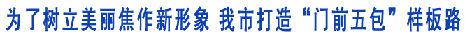 3月2日,我市全面啟動(dòng)了“美麗焦作大家行”活動(dòng);顒(dòng)重在號(hào)召城區(qū)主干道兩側(cè)門店落實(shí)“門前五包”責(zé)任制,為焦作更美麗作出應(yīng)有的貢獻(xiàn)。“門前五包”,即包市容秩序規(guī)范、包環(huán)境衛(wèi)生整潔、包美化亮化達(dá)標(biāo)、包綠地綠化完好、包設(shè)施功能完善。通過這一具有廣泛的群眾性、自覺性、現(xiàn)實(shí)性和長期性的城市管理模式,實(shí)現(xiàn)城市道路及兩側(cè)市容秩序井然、車輛停放有序、環(huán)境衛(wèi)生整潔、各類廣告標(biāo)牌規(guī)范、園林綠化品位提高、市政設(shè)施功能完善的目的。