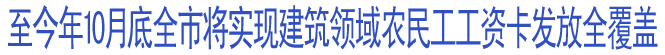 至今年10月底,全市將實現(xiàn)建筑領(lǐng)域農(nóng)民工工資卡發(fā)放全覆蓋