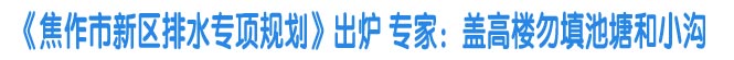 由于北高南低的地勢特點,時逢大雨,焦作市民都會不禁關注新區(qū)的雨水排流問題。那么,新區(qū)雨水排流能力到底有多大?新區(qū)已經(jīng)為不可遇知的大雨的到來作好應對準備了嗎?昨日,記者從市規(guī)劃研究設計院得知,《焦作市新區(qū)排水專項規(guī)劃》已經(jīng)出爐,部分規(guī)劃項目已展開實施。