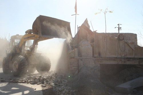 12月2日,解放區(qū)影視大道兩側(cè)綜合整治小分隊(duì)正用機(jī)械車輛拆除一家企業(yè)設(shè)備。連日來,解放區(qū)集中力量快速行動,強(qiáng)力推進(jìn)影視大道兩側(cè)環(huán)境綜合整治工作。李良貴 攝