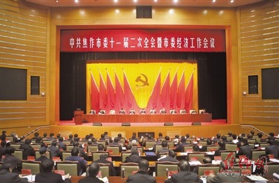 昨日下午,中共焦作市委十一屆二次全會(huì)暨市委經(jīng)濟(jì)工作會(huì)議在市會(huì)議中心圓形報(bào)告廳舉行。記者 趙耀東 攝