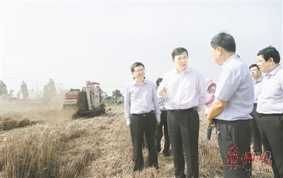 昨日上午,市委書記王小平等領(lǐng)導(dǎo)在武陟縣西陶鎮(zhèn)古城村機(jī)收現(xiàn)場(chǎng)調(diào)研三夏生產(chǎn)工作情況。記者 劉 璐 攝