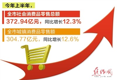 上半年,實(shí)現(xiàn)社會(huì)消費(fèi)品零售總額372.94億元,同比增長(zhǎng)12.3%