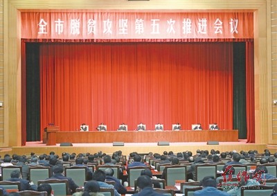 昨日,全市脫貧攻堅(jiān)第五次推進(jìn)會(huì)在市會(huì)議中心圓形報(bào)告廳召開。 記者 劉 璐 攝