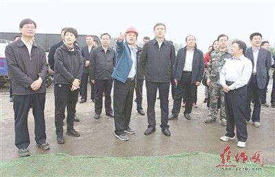 左圖 4月21日上午,市委書(shū)記王小平在南水北調(diào)府城水廠工地督導(dǎo)工程建設(shè)進(jìn)展情況。