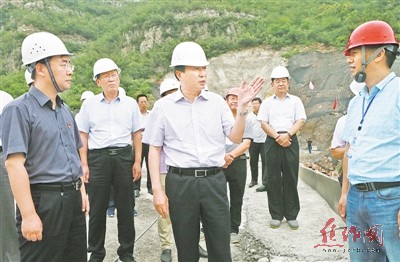 昨日,市委書記王小平等領(lǐng)導(dǎo)在白龍?zhí)端畮焓┕がF(xiàn)場調(diào)研工程建設(shè)進展和應(yīng)對汛情準(zhǔn)備情況。 記者 劉 璐 攝