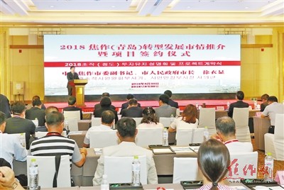左圖 8月30日下午,2018焦作(青島)轉(zhuǎn)型發(fā)展市情推介暨項(xiàng)目簽約儀式在青島舉行。市委副書記、市長徐衣顯出席儀式并致辭。特派記者 趙林峰 攝