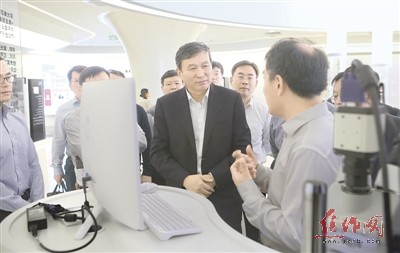 昨日,市委書記王小平等領(lǐng)導(dǎo)在紫光集團(tuán)有限公司考察。特派記者 趙耀東 攝