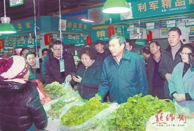 春節(jié)期間,市民能否吃得安全、買得放心是市領(lǐng)導(dǎo)一直掛在心上的問題。在怡園農(nóng)貿(mào)市場,王小平在菜攤前與商戶親切交談,認(rèn)真察看蔬菜是否新鮮,詳細(xì)詢問菜價(jià)和經(jīng)營環(huán)境。他叮囑有關(guān)人員,一定要把食品安全時(shí)刻放在心上,加強(qiáng)監(jiān)督管理,確保市民菜籃子的安全。
