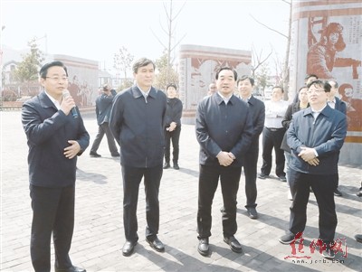 3月26日,市委書記、市人大常委會(huì)主任王小平,市委副書記、市長(zhǎng)徐衣顯帶領(lǐng)我市“學(xué)徐州揚(yáng)州、促轉(zhuǎn)型發(fā)展”專題研修班全體學(xué)員在徐州市銅山區(qū)漢王鎮(zhèn)南望村考察美麗鄉(xiāng)村建設(shè)。徐州市委書記、市人大常委會(huì)主任周鐵根(前右二)等領(lǐng)導(dǎo)陪同考察。 記者 劉 璐 趙林峰 攝
