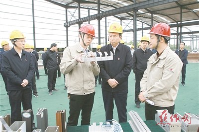4月19日,市委書記、市人大常委會(huì)主任王小平等領(lǐng)導(dǎo)在沁陽(yáng)市廣東興發(fā)鋁業(yè)(河南)有限公司年產(chǎn)5萬(wàn)噸節(jié)能輕質(zhì)高精鋁型材項(xiàng)目現(xiàn)場(chǎng)觀摩。