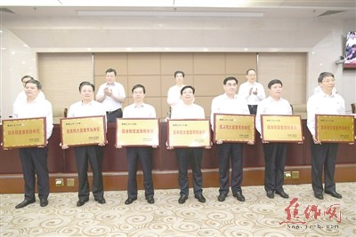 會議上,省政府對全省19家受激勵單位、市縣區(qū)進(jìn)行了表彰。其中,徐衣顯市長連續(xù)兩次走上主席臺,分別接受陳潤兒省長和戴柏華副省長為我市頒發(fā)的“2018年國務(wù)院大督查表揚(yáng)單位”“2018年國務(wù)院督查激勵單位”獎牌。
