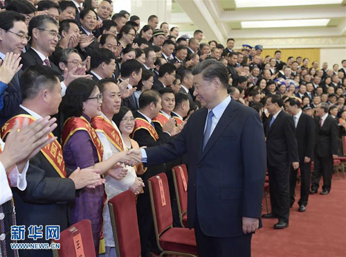 9月2日,黨和國家領(lǐng)導(dǎo)人習(xí)近平、李克強(qiáng)、王滬寧、王岐山等在北京人民大會堂會見中國紅十字會第十一次全國會員代表大會代表。新華社記者 謝環(huán)馳 攝