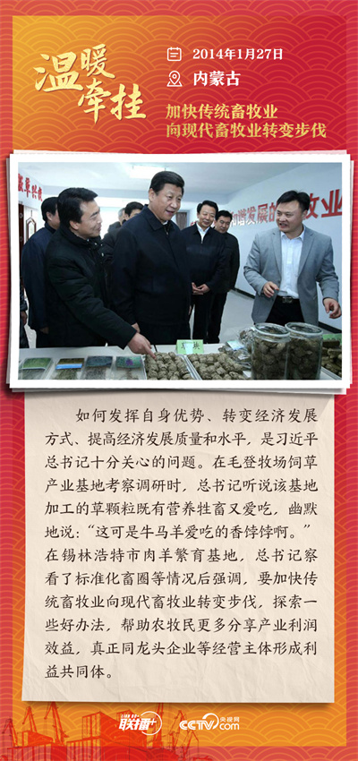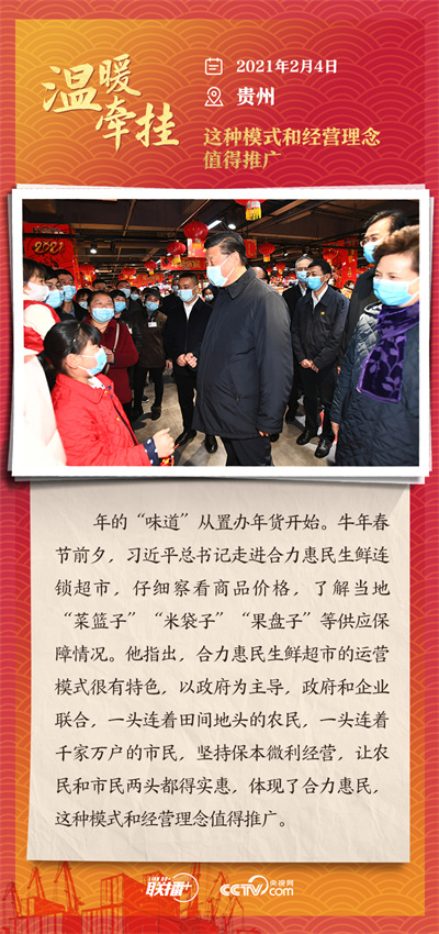 編者按:“大國之大,也有大國之重。千頭萬緒的事,說到底是千家萬戶的事!睆2013年起,每逢春節(jié)前夕,習近平總書記都會來到群眾身邊,拉家常、問冷暖,聽民聲、送祝福。央視網(wǎng)《聯(lián)播+》特推出“溫暖牽掛”系列,與您一同重溫總書記與大家在一起的溫暖故事,感受濃濃的領袖情懷。