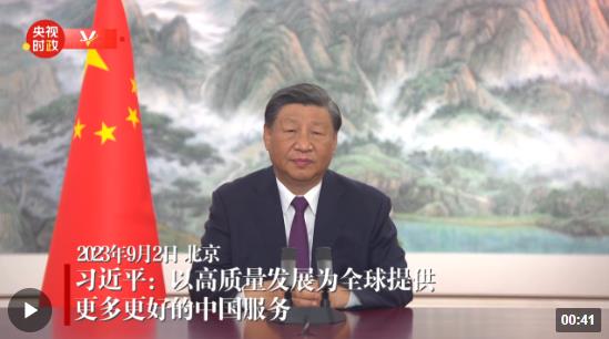 9月2日上午,國家主席習近平在2023年中國國際服務貿(mào)易交易會全球服務貿(mào)易峰會上發(fā)表視頻致辭。