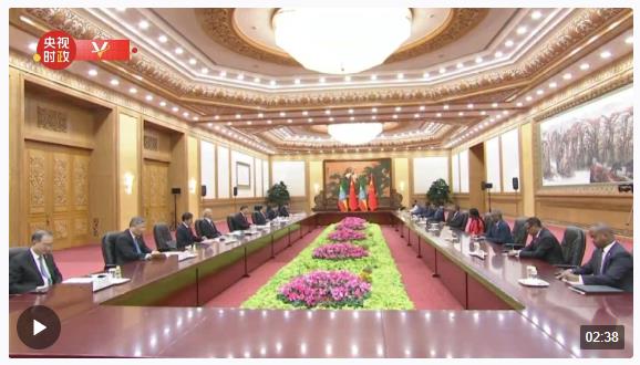 10月17日上午,國(guó)家主席習(xí)近平在人民大會(huì)堂會(huì)見(jiàn)來(lái)華出席第三屆“一帶一路”國(guó)際合作高峰論壇并進(jìn)行正式訪問(wèn)的埃塞俄比亞總理阿比。