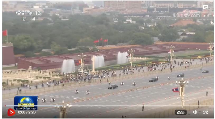 兩國元首回到檢閱臺觀看儀仗隊分列式。