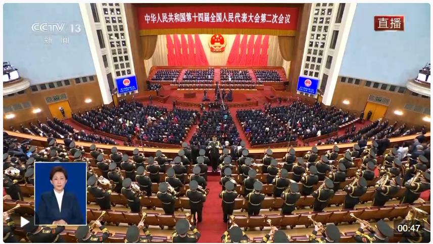 獨家視頻丨十四屆全國人大二次會議開幕 全場高唱國歌