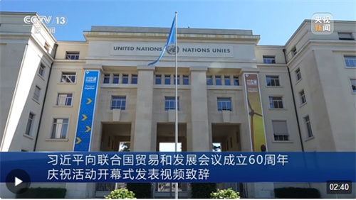 6月12日,國家主席習近平向聯(lián)合國貿(mào)易和發(fā)展會議成立60周年慶;顒娱_幕式發(fā)表視頻致辭。