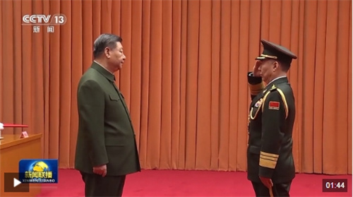 習(xí)近平向晉升上將軍銜的陸軍政治委員陳輝頒發(fā)命令狀,表示祝賀。佩戴了上將軍銜的陳輝向習(xí)近平敬禮,向參加儀式的全體同志敬禮,全場響起熱烈掌聲。