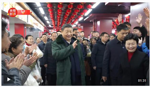 此后,從昆明新春購物博覽會,到貴陽的合力惠民生鮮超市,從山西平遙古城南大街,到北京新發(fā)地農(nóng)產(chǎn)品批發(fā)市場、天津古文化街,總書記多次通過實地考察、視頻連線等形式關(guān)注節(jié)日期間市場供應(yīng)情況。