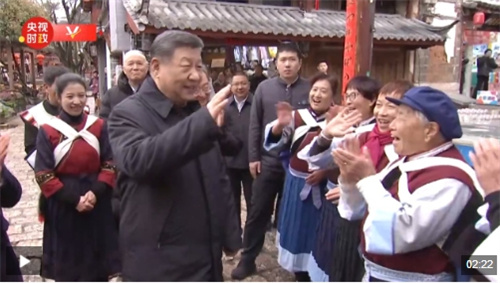 3月19日下午,習近平總書記來到這里,詳細了解古城營建歷史、納西族民居特色和當?shù)匚幕z產(chǎn)保護利用、推動文旅融合發(fā)展等情況。居民和游客見到總書記十分興奮,爭相問好,有的還彈奏樂器、載歌載舞歡迎總書記。習近平頻頻與大家互動交流,了解商鋪經(jīng)營狀況和游客感受。