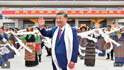 獨(dú)家視頻丨習(xí)近平率中央代表團(tuán)抵達(dá)拉薩出席西藏自治區(qū)成立60周年慶;顒(dòng)