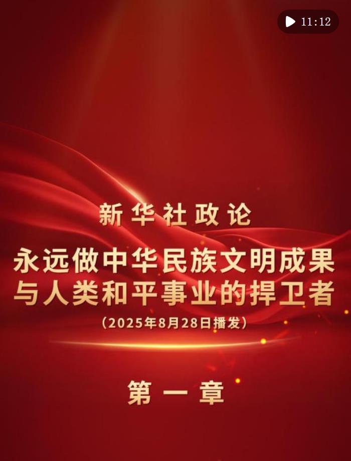 新華社8月28日播發(fā)《新華社政論|永遠(yuǎn)做中華民族文明成果與人類(lèi)和平事業(yè)的捍衛(wèi)者——寫(xiě)在中國(guó)人民抗日戰(zhàn)爭(zhēng)暨世界反法西斯戰(zhàn)爭(zhēng)勝利80周年之際》。我們邀請(qǐng)誦讀嘉賓任志宏演播“第一章”。