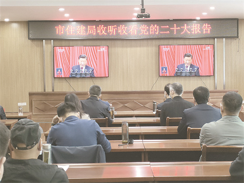 市住建局黨員干部在收聽收看黨的二十大開幕會。本報(bào)記者 張 璐 攝